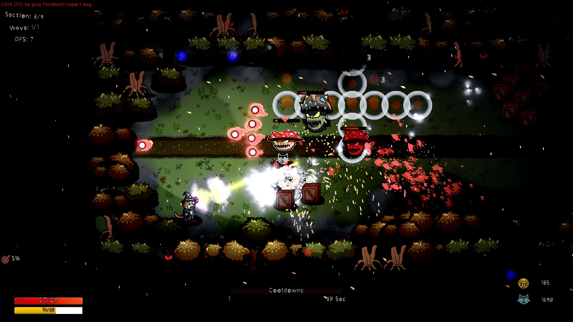 In this dark and gory action-packed Bullet Hell Roguelite you will play as a terrified wizard cat, stuck in a children’s book gone wrong. Mr. Sparkle’s Nightmare features a spell crafting system that lets you combine runes into entirely new spells and effects. Add the Feral Volley and Kaboom Paw to Fireclaw to create a close-range explosive shotgun blast, or fuse the Claw and Cloning Kittens with Cat’s Eye Laser, to unleash long-range claw-spawning beams that pierce through groups of enemies. Beware though; no build will save you as movement mistakes are punished brutally, keeping every encounter tense and unforgiving.